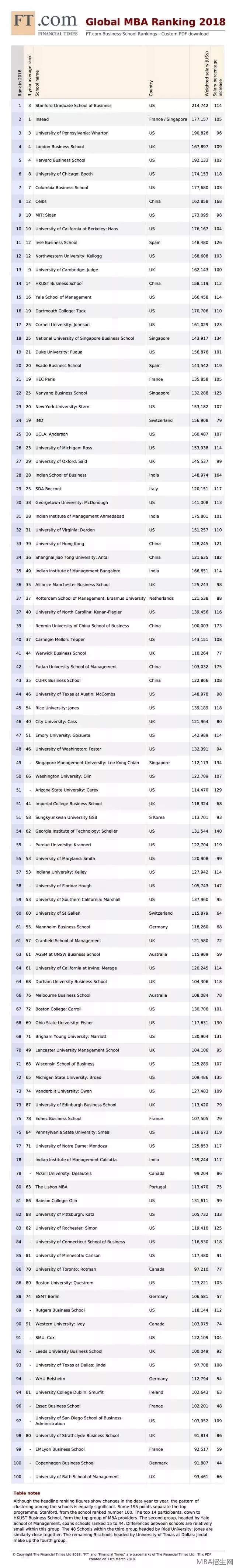 《金融時報》全球MBA前100排行榜,中國7所商學院擠進前五十 文  /MBA招生網(wǎng)2018-06-14 13:42:52