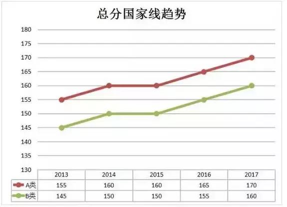 從2013年開(kāi)始MBA聯(lián)考的國(guó)家線(xiàn)一路高歌猛進(jìn),從155分一路飆升至170分,這一路高升的分?jǐn)?shù)讓很多考生不免擔(dān)心,今年的管理類(lèi)聯(lián)考的分?jǐn)?shù)線(xiàn)會(huì)不會(huì)又要再次升溫?畢竟今年的報(bào)考人數(shù)相對(duì)于去年來(lái)說(shuō)報(bào)考人數(shù)又大幅增加,專(zhuān)業(yè)學(xué)位報(bào)考人數(shù)也開(kāi)始逐漸增多。我們先看一下近五年國(guó)家線(xiàn)的趨勢(shì),如下圖所示: