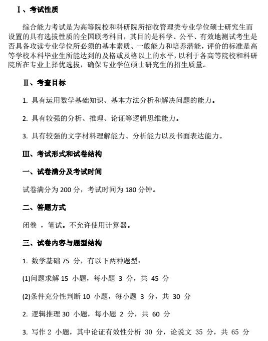 每年參加MBA聯(lián)考的考生都非常關注每年8、9月份發(fā)布的MBA考試大綱,針對馬上到來的2018年MBA考試,大綱已經(jīng)公布了,同時也就意味著MBA聯(lián)考也要進入沖刺階段了。那么各位考生,我們就一起來一下最新的綜合能力考試大綱是怎樣的吧。
