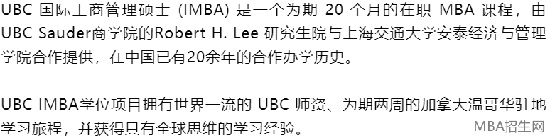 關(guān)于UBC IMBA