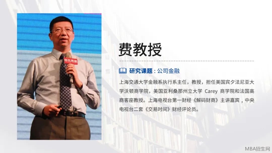 上海交通大學(xué)安泰經(jīng)濟(jì)與管理學(xué)院EMBA課程教授,金融系副教授,創(chuàng)新創(chuàng)業(yè)EMBA項(xiàng)目創(chuàng)業(yè)導(dǎo)師,2006-2009年曾任上海交通大學(xué)安泰經(jīng)濟(jì)與管理學(xué)院金融系執(zhí)行副系主任。主要專業(yè)領(lǐng)域?yàn)楣窘鹑凇?br />