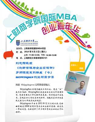 8月2日:上海財經(jīng)大學(xué)國際MBA創(chuàng)業(yè)嘉年華系列講座(七)