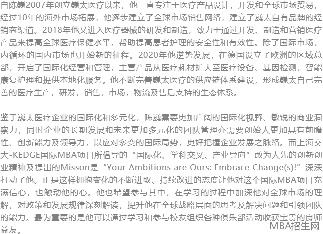 “雙向奔赴!” | 上海交大-KEDGE Global MBA項目2022級新生圖鑒 文  /MBA招生網(wǎng)2023-02-17 14:46:09