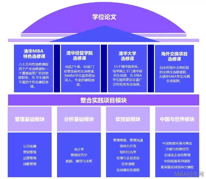 清華MBA新版課程體系由核心課、選修課和學(xué)位論文三個部分組成。核心課全部為通用性、基礎(chǔ)性課程,能夠為MBA學(xué)生后續(xù)的學(xué)習(xí)打下堅實基礎(chǔ)。在核心課后MBA學(xué)生可以根據(jù)個人的需要選修經(jīng)管學(xué)院、清華大學(xué)和海外院校的課程,進行個性化的學(xué)習(xí)。在最后的學(xué)位論文階段,MBA學(xué)生可以結(jié)合自己的工作實際和學(xué)習(xí)興趣,完成綜合性、實踐性的學(xué)位論文,達(dá)到將在校所學(xué)融匯貫通、深入掌握的目的。
