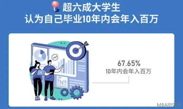 今日,一則新聞登上微博熱搜,六成大學生認為畢業(yè)10年內(nèi)會年入百萬,其調(diào)查結(jié)果顯示,00后對自己進入職場后的薪資比較樂觀,超過20%的大學生預(yù)期自己畢業(yè)后月薪過萬,其中8.20%男生和3.25%女生預(yù)期自己會進“5萬元俱樂部”。此外,67.65%大學生評估自己畢業(yè)10年內(nèi)會年入百萬。
