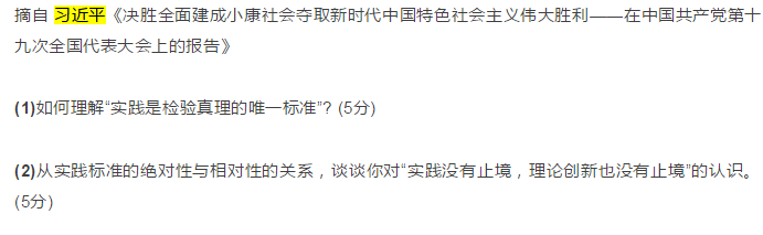 2019年全國碩士研究生招考試思想政治理論題