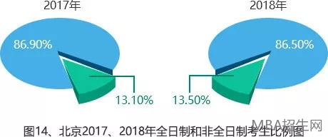 以北京、河北為例。全日制和非全日制統(tǒng)一招生兩年以來,報考非全日制的考生占比逐年增多。