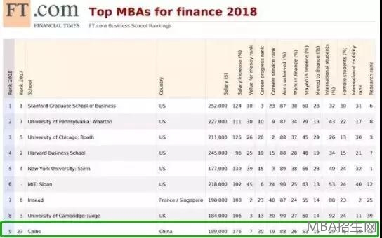 2018年5月7日,英國《金融時報》(簡稱FT)發(fā)布2018年度FT全球金融MBA(Top MBAs for Finance)排行榜,此次排名根據(jù)MBA畢業(yè)生在金融行業(yè)的從業(yè)比例、薪資狀況、職業(yè)發(fā)展和學(xué)院的學(xué)術(shù)能力等指標(biāo)情況進行了評比。中國地區(qū)六所商學(xué)院躍居前五十強。
